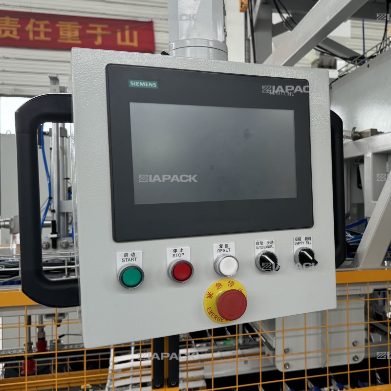 4). Vendosja e parametrave të makinës së paketimit kryhet në ekranin me prekje. Ndërfaqja e funksionimit të ekranit me prekje, miqësore me njeriun dhe makinën, mund të monitorojë në mënyrë gjithëpërfshirëse statusin e funksionimit të të gjithë makinës. Shfaqja automatike e defekteve dhe udhëzimet e metodës së përpunimit i lejojnë personelit të mirëmbajtjes të merret me defektin në kohën më të shkurtër të mundshme.