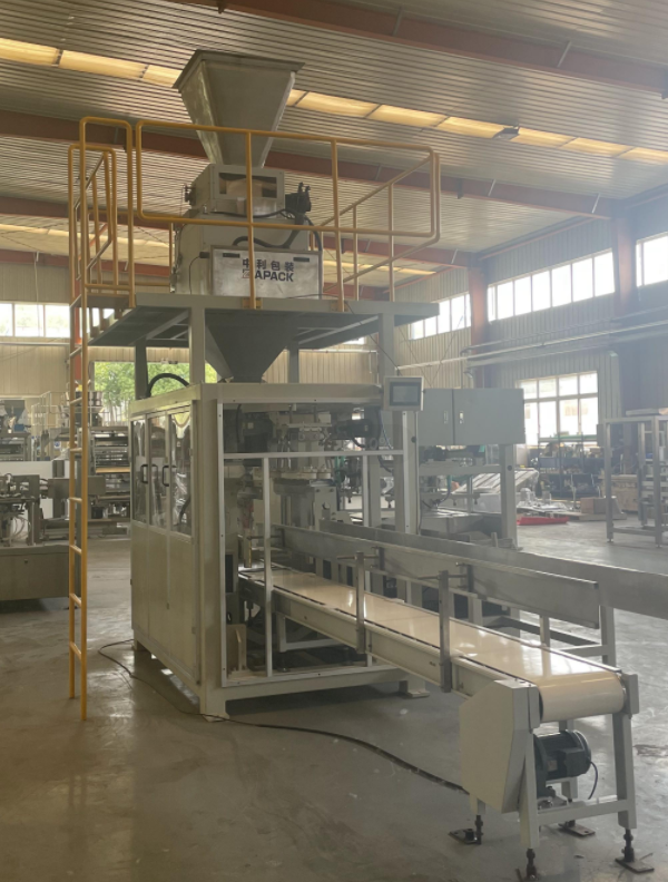 Kjo makineri paketimi është zhvilluar për paketimin e materialeve granuloze si fusha kimike, ushqimore, drithëra dhe fara. Njësia është e pajisur me funksionin e marrjes automatike të qeseve, mbushjes automatike, transportimit dhe mbylljes automatike të qeseve. Mund të lidhet me të gjitha llojet e pajisjeve të prodhimit të materialit granuloz për të punuar për të arritur prodhimin e pambikëqyrur të operacioneve të paketimit me përmasa të mëdha. Kontrolli i ekranit me prekje LCD . Ndërfaqja njeri-kompjuter më e favorshme .Diagnostikimi automatik i defekteve .Mbrojtja nga mbyllja e sigurisë. Rregullim i shpejtë dhe mirëmbajtje e lehtë.