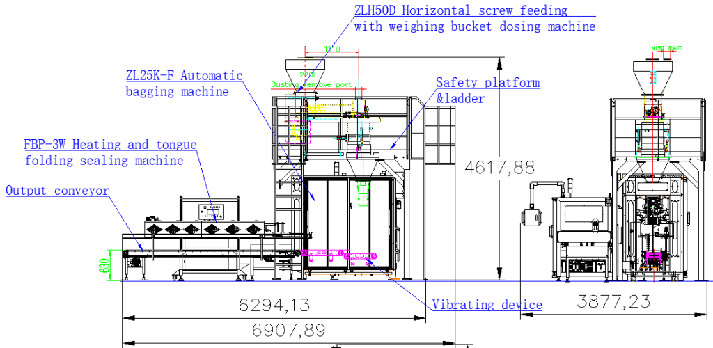 Kjo linjë është projektuar posaçërisht për peshimin automatik të mbushjes së pluhurit në qese letre karft 15-25 kg dhe më pas vulosjen e qeses. Sipas kërkesave të klientit, ne gjithashtu duhet të ofrojmë kontrollin automatik të peshës, detektorin e metaleve dhe paletizimin. Shitësi përfundoi projektimin, prodhimin dhe furnizimin e linjës së prodhimit në përputhje të rreptë me kërkesat teknike dhe të kombinuar me përvojën e vet në projektimin e linjës së paketimit në industrinë e sheqerit.