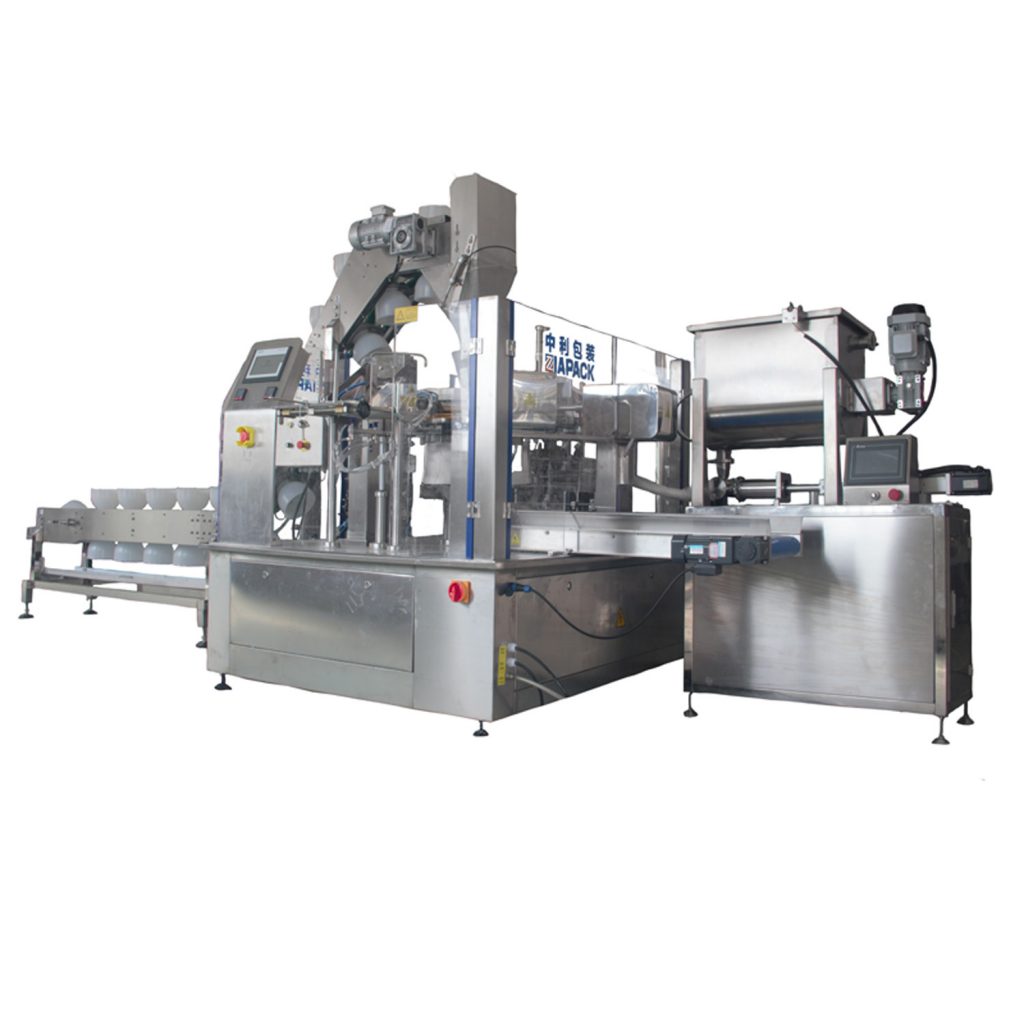 Kjo makinë është projektuar për mbushjen e produktit të lëngshëm të përzier me produktin e ngurtë si p.sh., gatim paraprak të ushqimit si turshi me supë, ullinj turshi, tranguj turshi etj. salcë .
