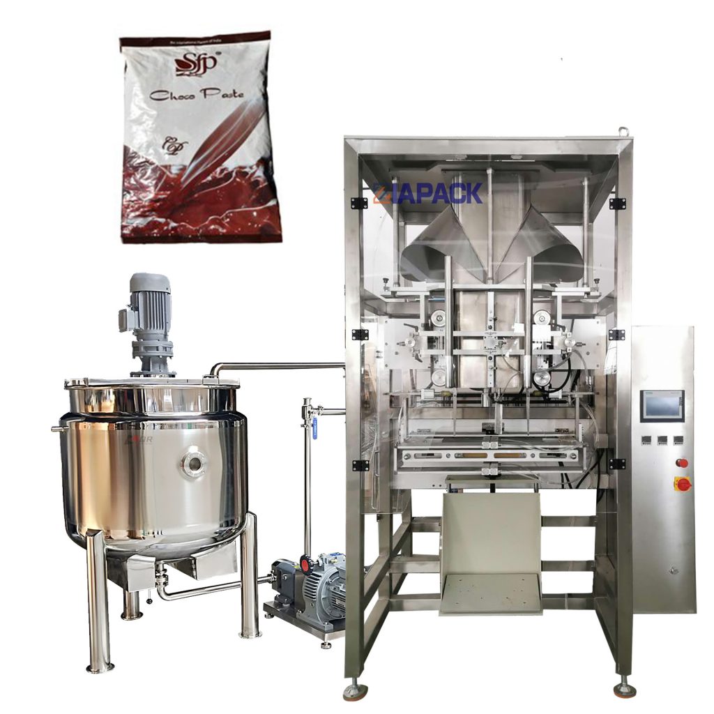 Kjo njësi makinerie është dizajn special për paketimin e produktit të vogël të salcës si ketch up, salcë djegës, miell peshku etj. Makina mund ta bëjë automatikisht qesen, të peshojë produktin, të mbushë produktin në qese dhe më pas të nxjerrë transportuesin. E gjithë makina janë të kontrolluara nga PLC dhe mund të funksionojnë në ekranin me prekje. Lehtë për rregullim dhe mirëmbajtje.
