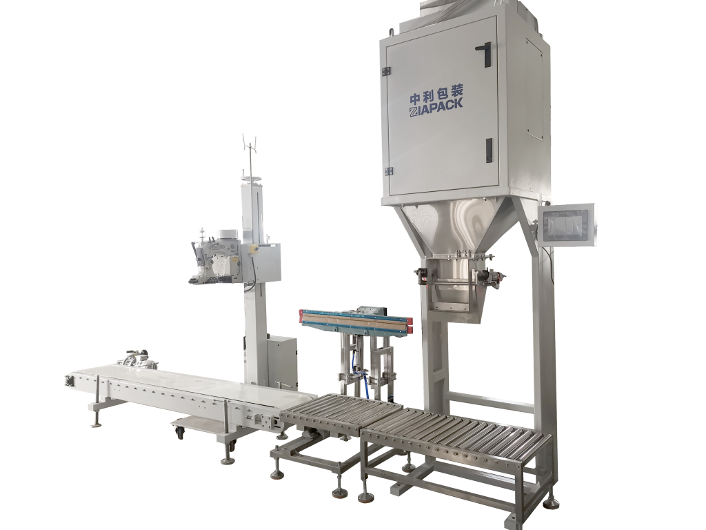 Ajo ka nevojë për dy persona për mbështetje manuale, njëra është për vendosjen e çantës nën daljen e shkarkimit, një tjetër është për të mbështetur makinën e qepjes për të vulosur qesen.
