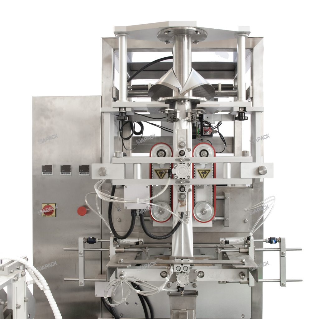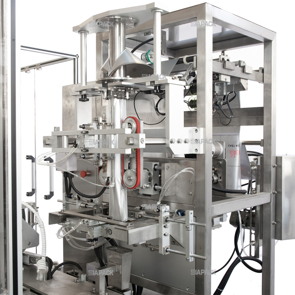 Kjo makinë përfshin një ashensor me vakum, një grup ZL520 vertikale për paketimin dhe vulosjen e qeseve. Një grup makine peshimi me kova të dyfishta ZLC4-2000, Një grup ZL-100V Makinë paketimi me një dhomë vakum Kjo makinë përdoret gjerësisht për paketimin e kimikateve të farmacive ushqimore dhe produkt tjetër në pluhur ose granula të vogla. Ashtu si pluhuri i kafesë, pluhuri i majave miell gruri e kështu me radhë. E gjithë makina pompon brenda produktit me vakum. Shkalla e vakumit është shumë e lartë dhe shpejtësia e paketimit është shumë e lartë mund të arrijë 8 qese/min. Produkti i përfunduar është shumë i bukur dhe ka një jetëgjatësi e gjatë.