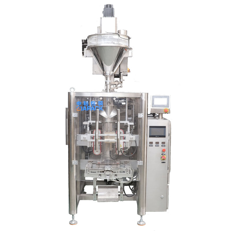 Kjo makinë është një dizajn i veçantë për paketimin e produktit pluhur në çantën e poshtme të jastëkut. Përdoret gjerësisht për paketimin e miellit të grurit dhe pluhurit kimik. Kjo njësi makine përfshin një grup makine mbushëse me gozhdë ZL2000 një grup makinë mbushëse vertikale për formimin e qeseve ZL520. një grup me gojë të hapur makineri përcjellëse e qeseve dhe sistem kontrolli. E gjithë makina kontrollohet nga PLC dhe funksionon me ekran me prekje me ngjyra.